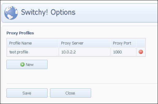 Switchy!可以允許用戶同時設置多個代理服務器並且通過點擊擴展按鈕快速在不同的代理服務器間切換,目前這個擴展功能還比較基本,只支持http類型的代理,而且不支持根據規則切換代理,距離Firefox的 Foxyproxy 還有一定差距。